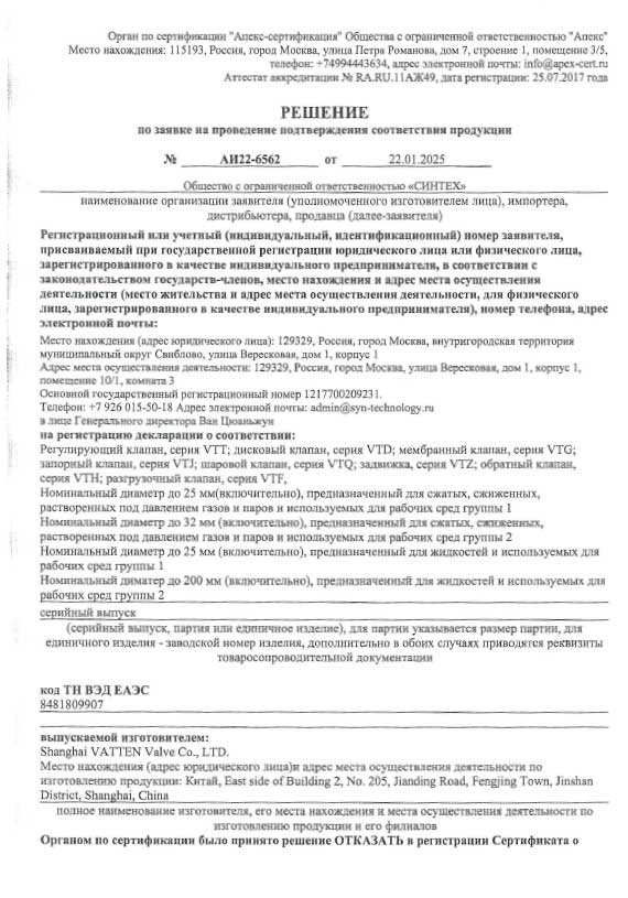 • Vatten Valve Group